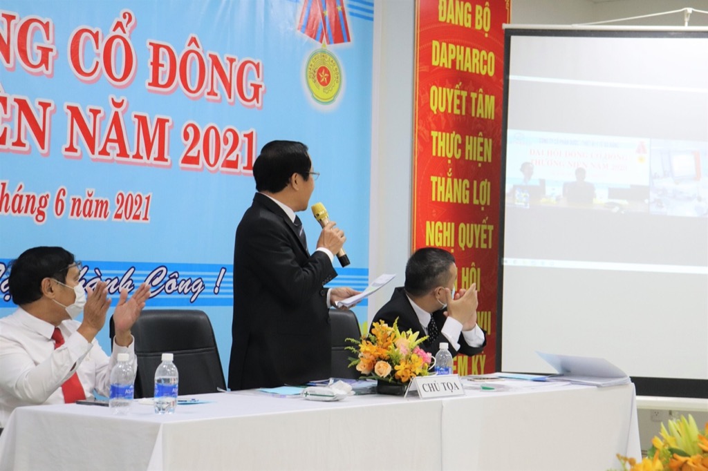 Do tình hình dịch bệnh bùng phát tại Đà Nẵng – với chủng mới Delta lây nhanh và mạnh rất nguy hiểm vào những ngày gần đây. Chính quyền thành phố Đà Nẵng đã yêu cầu áp dụng các biện pháp giãn cách xã hội mạnh, quy định công sở hội họp không quá 30 người. Vì vậy, trong Đại hội Cổ đông thường niên năm 2021 lần này công ty Dapharco đã khuyến khích các cổ đông thực hiện ủy quyền tham dự để giới hạn số người tham dự đại hội không quá 30 người theo như chỉ thị về giãn cách xã hội của thành phố để đảm bảo công tác phòng chống dịch Covid-19.